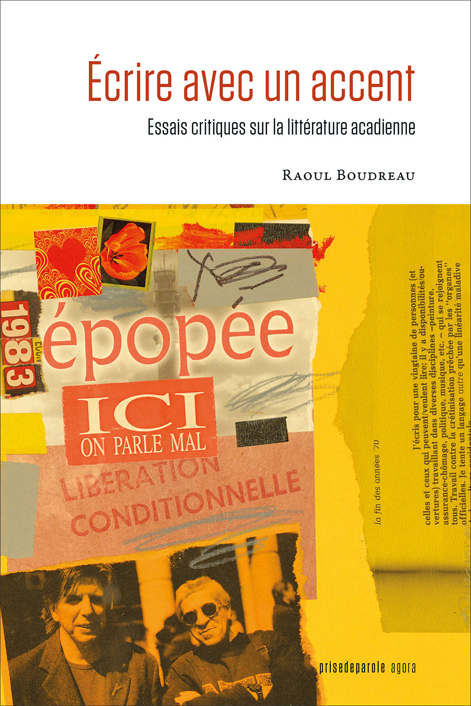 Écrire avec un accent rassemble des textes marquants publiés par Raoul Boudreau, l’un des premiers et des plus influents chercheurs à avoir pensé la littérature acadienne comme un champ d’études à part entière.